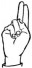 На ћирилици написано ДИНА АКСЕНТИЋ састоји се из 12 слова [?]. Исписано ћириличном једноручном азбуком за глувонеме: